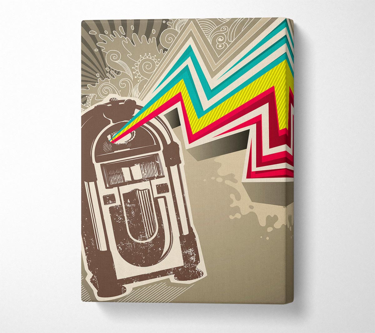 Jukebox Tunes Canvas Print handmade in the UK. Stretched over a 2 inch thick wooden box frame, ready to hang on your wall.