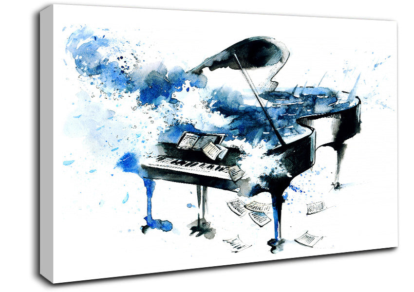 Piano Blues Canvas Print handmade in the UK. Stretched over a 2 inch thick wooden box frame, ready to hang on your wall.