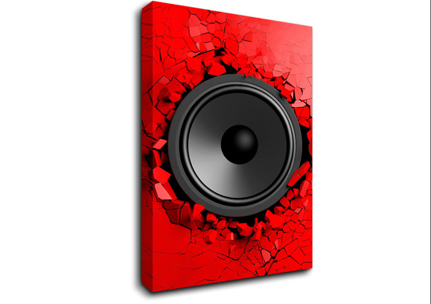 Red Speaker Break Canvas Print handmade in the UK. Stretched over a 2 inch thick wooden box frame, ready to hang on your wall.