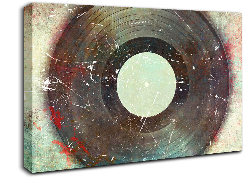 Retro Album Scratch Canvas Print handmade in the UK. Stretched over a 2 inch thick wooden box frame, ready to hang on your wall.