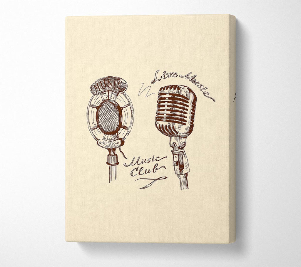 Retro Music Club Canvas Print handmade in the UK. Stretched over a 2 inch thick wooden box frame, ready to hang on your wall.