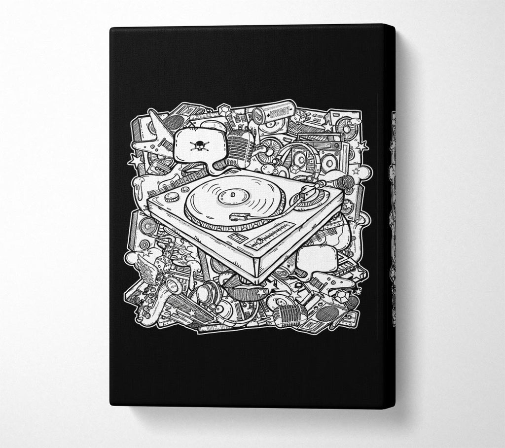 Retro Music Player Canvas Print handmade in the UK. Stretched over a 2 inch thick wooden box frame, ready to hang on your wall.
