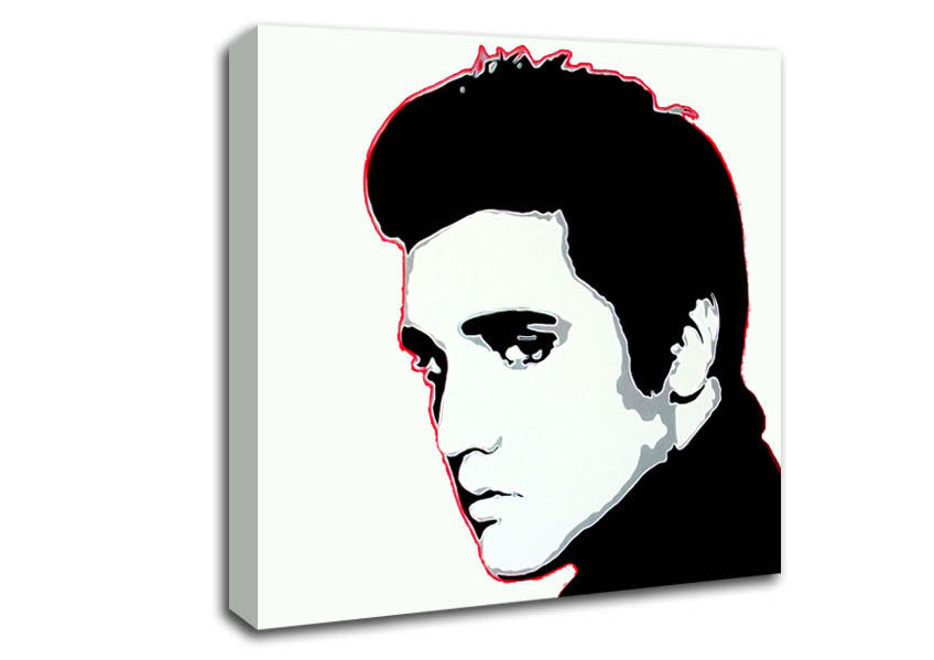 Elvis Portrait White Square Canvas Print handmade in the UK. Stretched over a 2 inch thick wooden box frame, ready to hang on your wall.