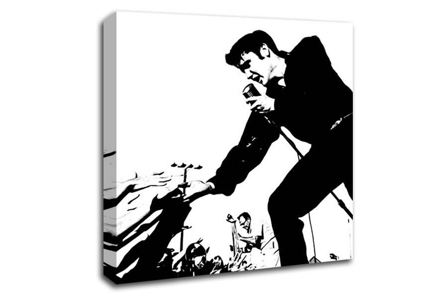Elvis Presley On Stage Square Canvas Print handmade in the UK. Stretched over a 2 inch thick wooden box frame, ready to hang on your wall.