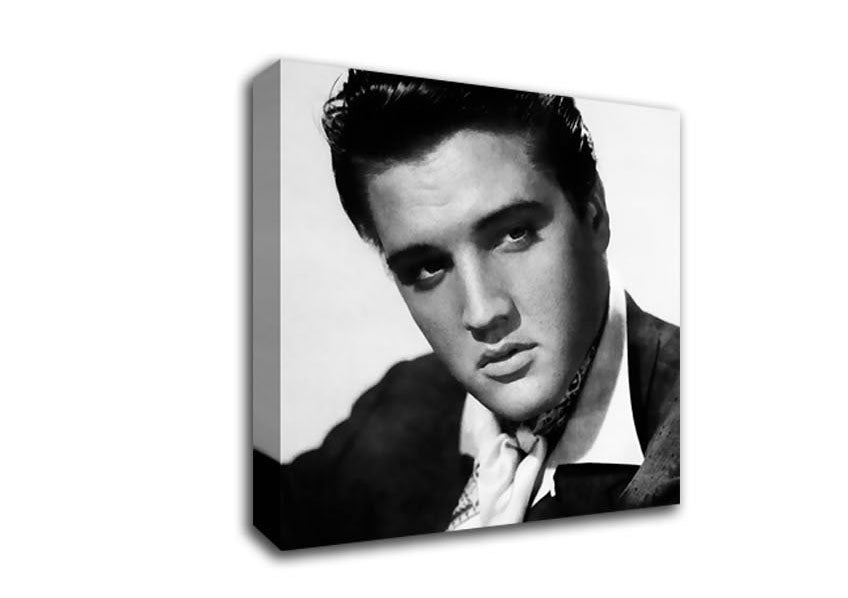 Elvis Presley Portrait Square Canvas Print handmade in the UK. Stretched over a 2 inch thick wooden box frame, ready to hang on your wall.