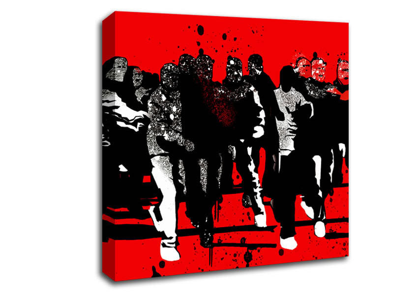Football Factory Battle Square Canvas Print handmade in the UK. Stretched over a 2 inch thick wooden box frame, ready to hang on your wall.