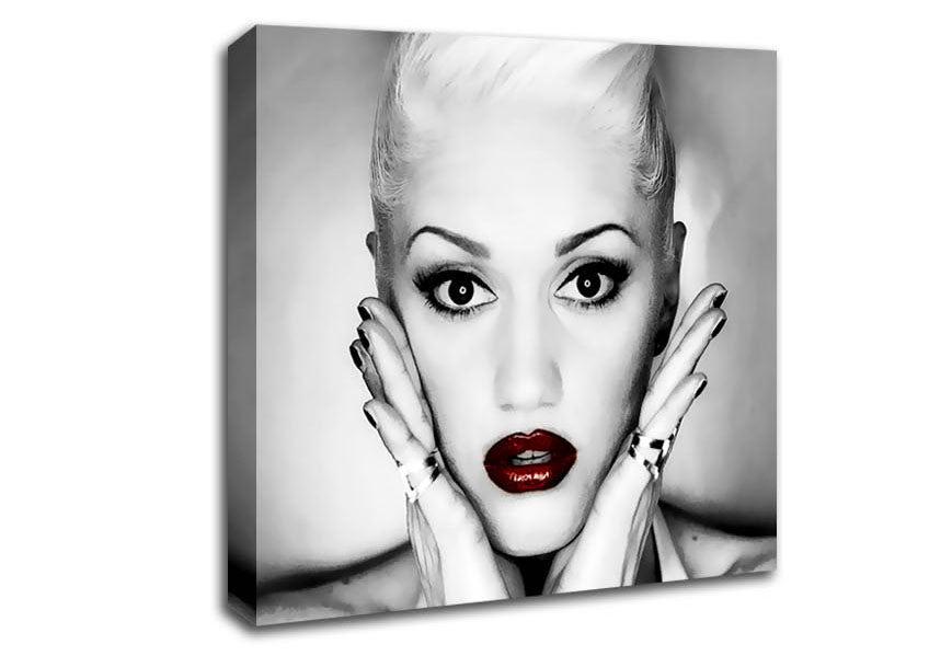 Gwen Stefani Red Lips Square Canvas Print handmade in the UK. Stretched over a 2 inch thick wooden box frame, ready to hang on your wall.