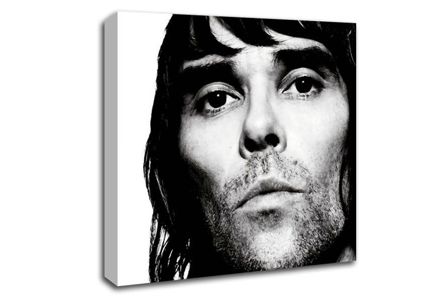 Ian Brown B n W Square Canvas Print handmade in the UK. Stretched over a 2 inch thick wooden box frame, ready to hang on your wall.