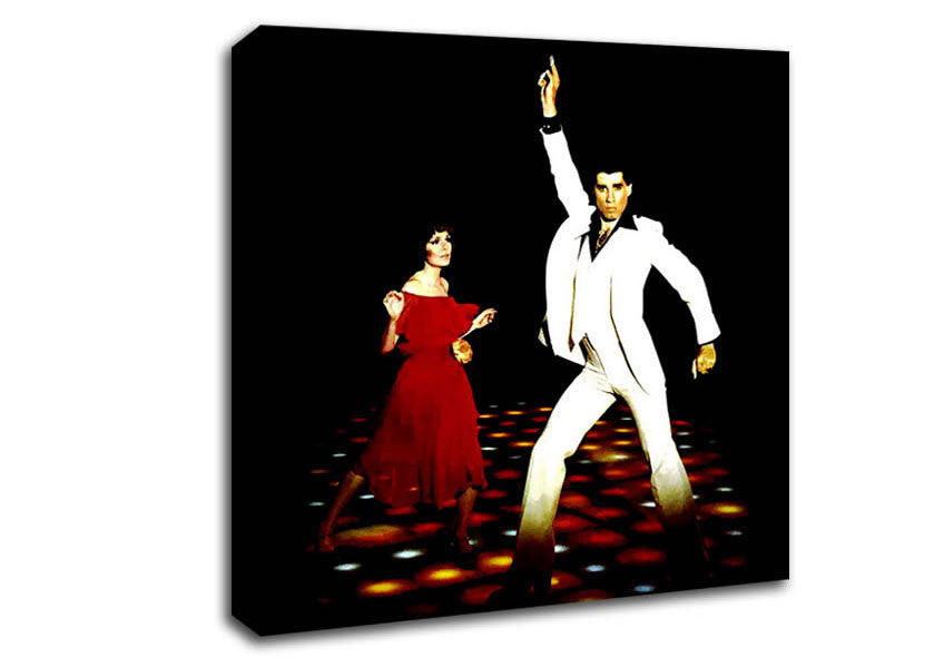 John Travolta Saturday Night Fever Square Canvas Print handmade in the UK. Stretched over a 2 inch thick wooden box frame, ready to hang on your wall.