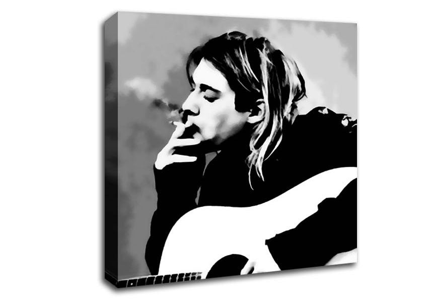Kurt Cobain Guitar Smoke Square Canvas Print handmade in the UK. Stretched over a 2 inch thick wooden box frame, ready to hang on your wall.