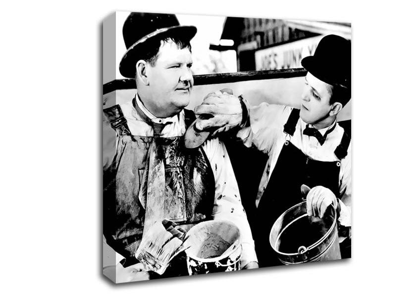 Laurel n Hardy Towed In The Hole Square Canvas Print handmade in the UK. Stretched over a 2 inch thick wooden box frame, ready to hang on your wall.