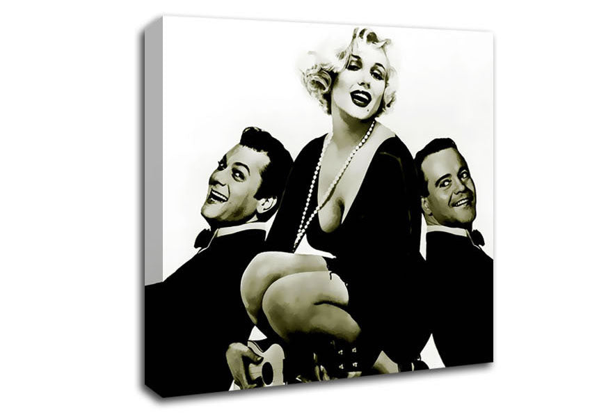 Marilyn Monroe And The Boys Square Canvas Print handmade in the UK. Stretched over a 2 inch thick wooden box frame, ready to hang on your wall.