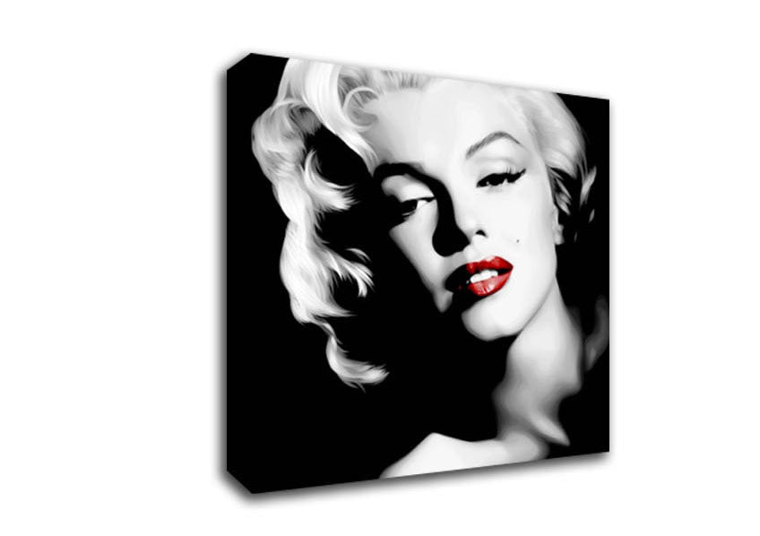 Marilyn Monroe Red Lips Portrait Square Canvas Print handmade in the UK. Stretched over a 2 inch thick wooden box frame, ready to hang on your wall.