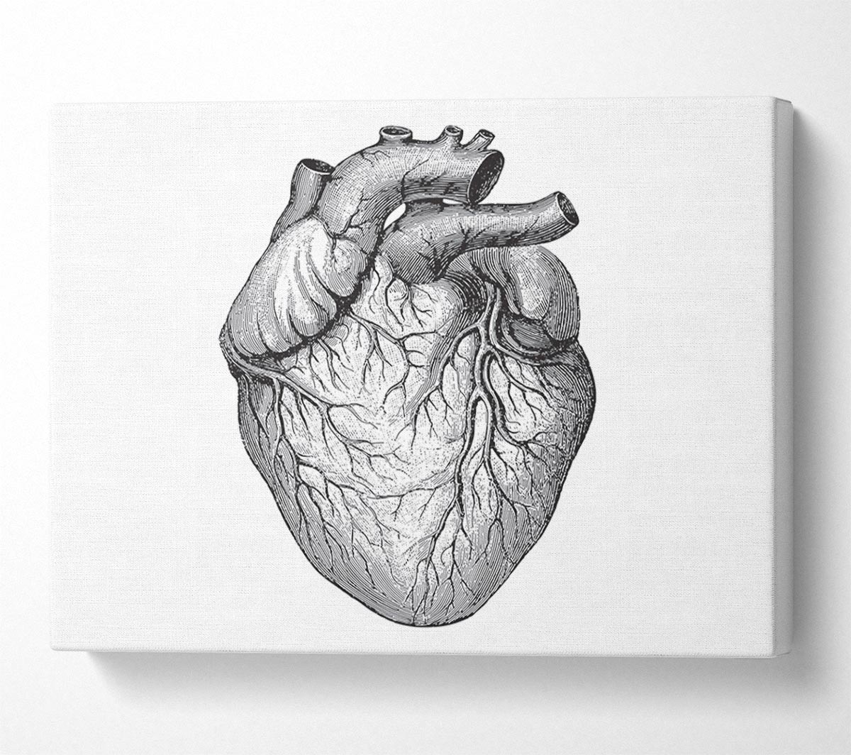 Anatomy Of The Heart Canvas Print handmade in the UK. Stretched over a 2 inch thick wooden box frame, ready to hang on your wall.