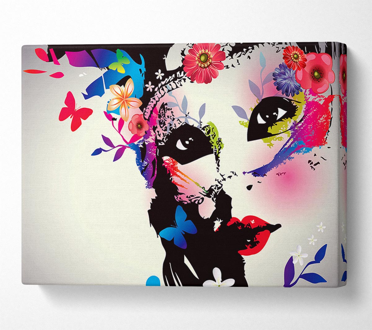 Flower Woman Canvas Print handmade in the UK. Stretched over a 2 inch thick wooden box frame, ready to hang on your wall.