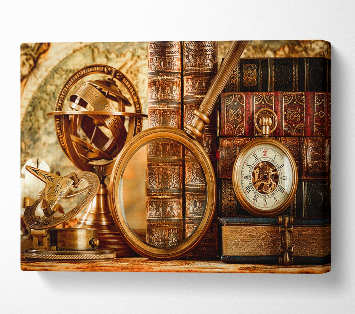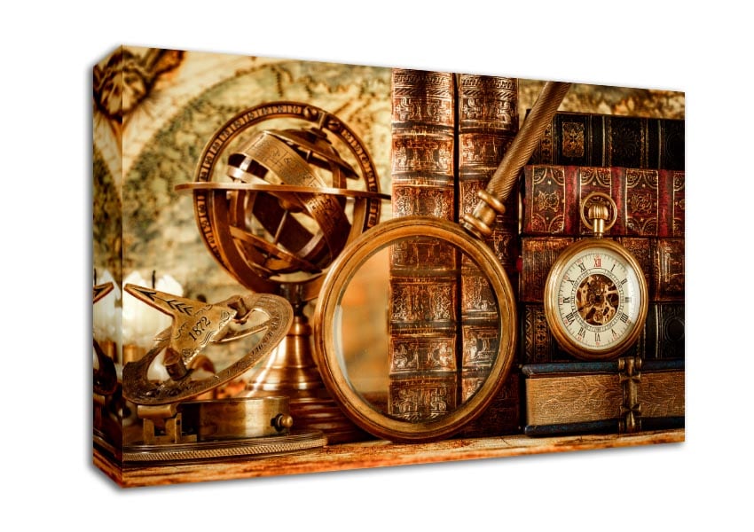 Magnifying vintage objects Canvas Print handmade in the UK. Stretched over a 2 inch thick wooden box frame, ready to hang on your wall.