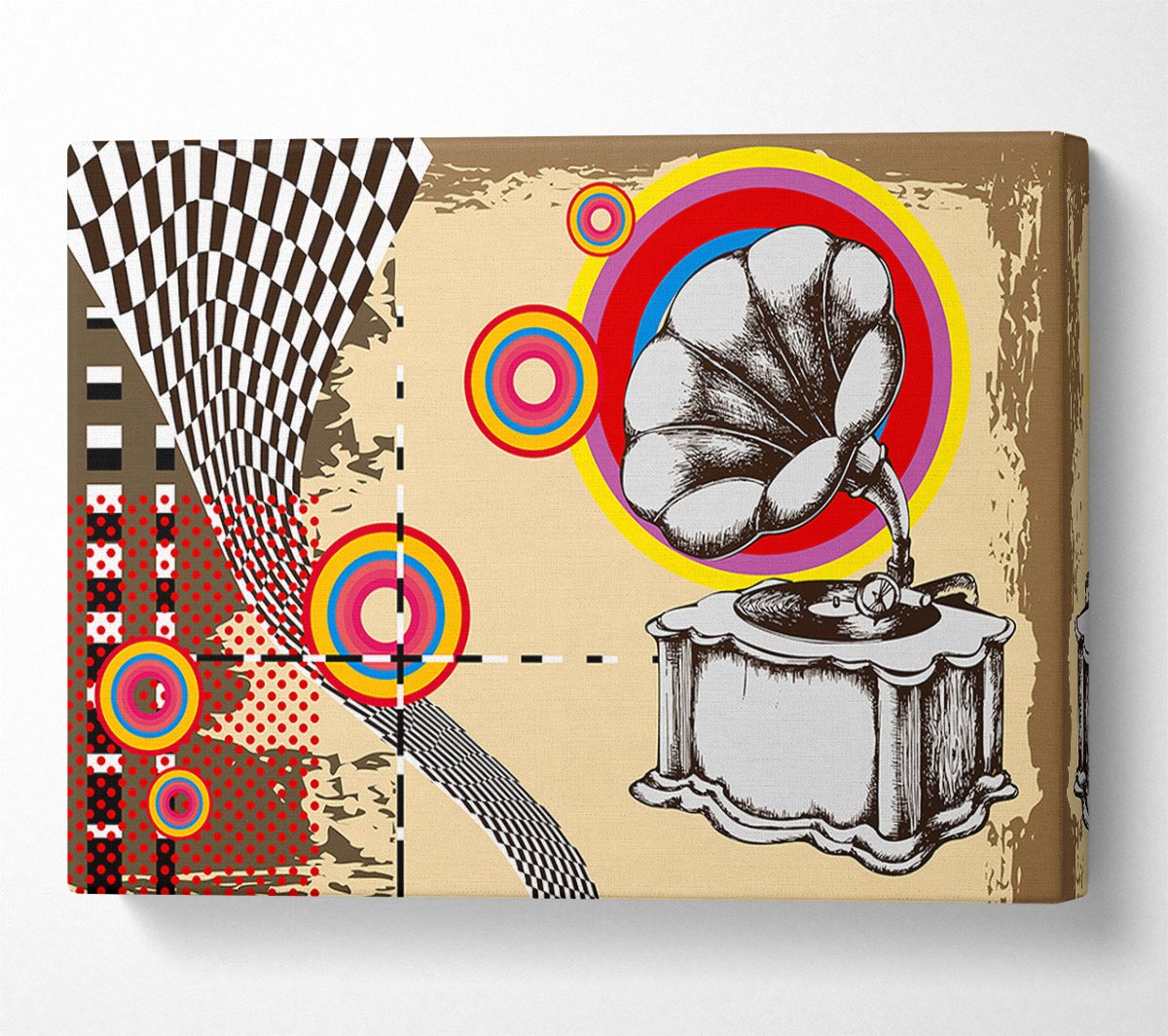Old Record Player Canvas Print handmade in the UK. Stretched over a 2 inch thick wooden box frame, ready to hang on your wall.