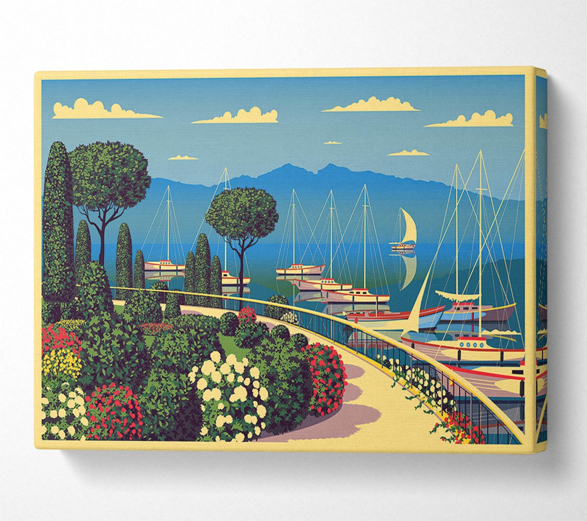 Vintage Travel Poster Canvas Print handmade in the UK. Stretched over a 2 inch thick wooden box frame, ready to hang on your wall.