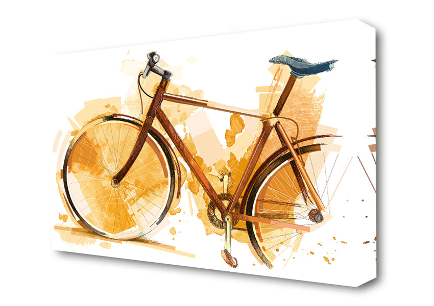 Watercolour Bike Canvas Print handmade in the UK. Stretched over a 2 inch thick wooden box frame, ready to hang on your wall.