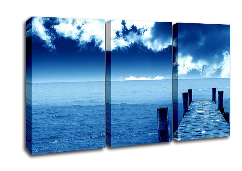 Blue Dock Clouds 3 Panel Canvas Print handmade in the UK. Stretched over a 2 inch thick wooden box frame, ready to hang on your wall.