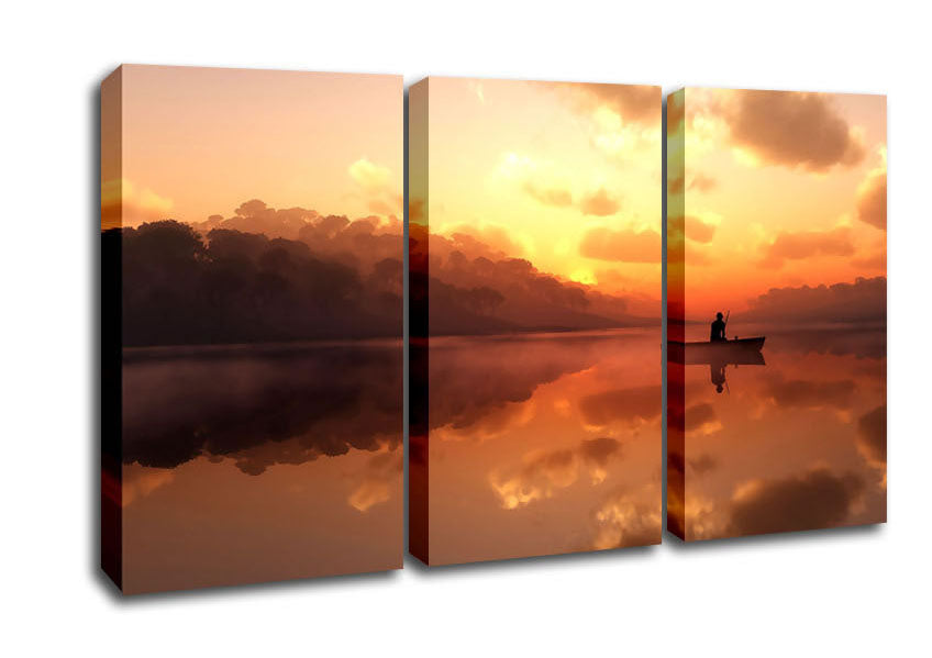 Fishing In The Tranquil Sky Reflection 3 Panel Canvas Print handmade in the UK. Stretched over a 2 inch thick wooden box frame, ready to hang on your wall.