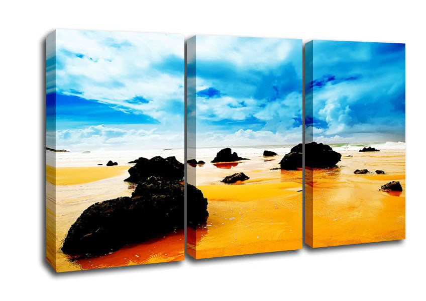 Orange Sands 3 Panel Canvas Print handmade in the UK. Stretched over a 2 inch thick wooden box frame, ready to hang on your wall.