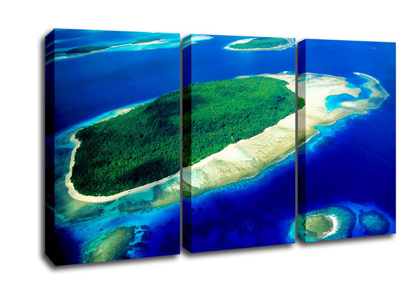 Paradise Islands 3 Panel Canvas Print handmade in the UK. Stretched over a 2 inch thick wooden box frame, ready to hang on your wall.