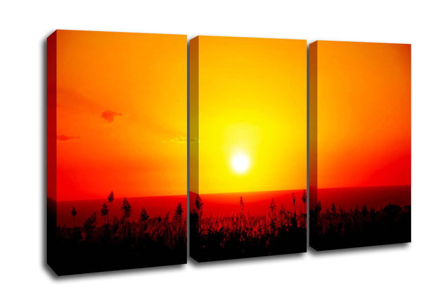 Red Ocean Flowers 3 Panel Canvas Print handmade in the UK. Stretched over a 2 inch thick wooden box frame, ready to hang on your wall.