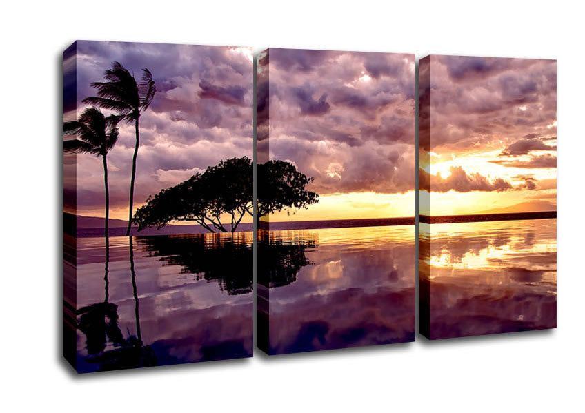 Stunning Tree In The Cloudy Sky Ocean 3 Panel Canvas Print handmade in the UK. Stretched over a 2 inch thick wooden box frame, ready to hang on your wall.
