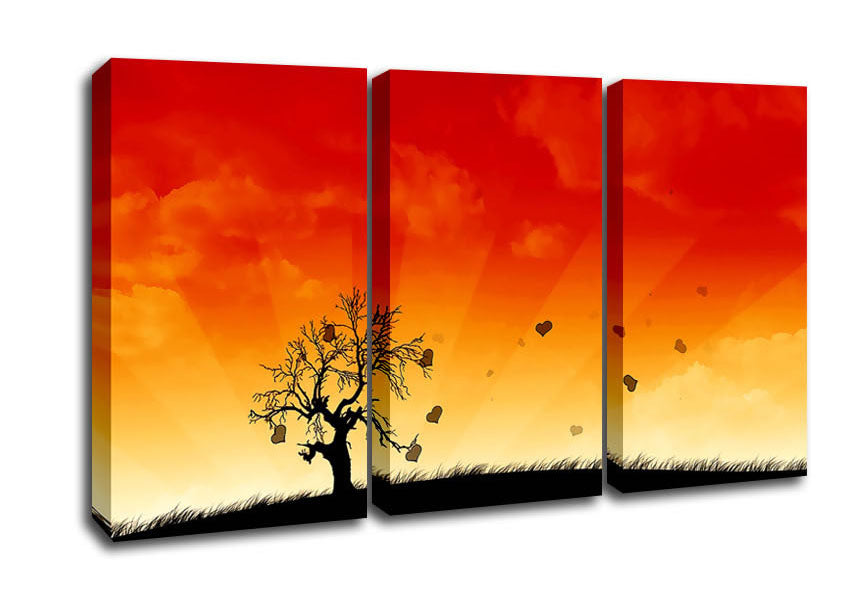 Sun Blaze Tree 3 Panel Canvas Print handmade in the UK. Stretched over a 2 inch thick wooden box frame, ready to hang on your wall.
