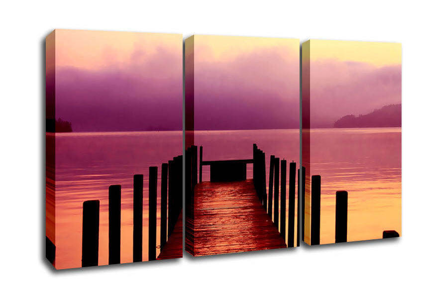 Tranquil Boardwalk Ocean 3 Panel Canvas Print handmade in the UK. Stretched over a 2 inch thick wooden box frame, ready to hang on your wall.