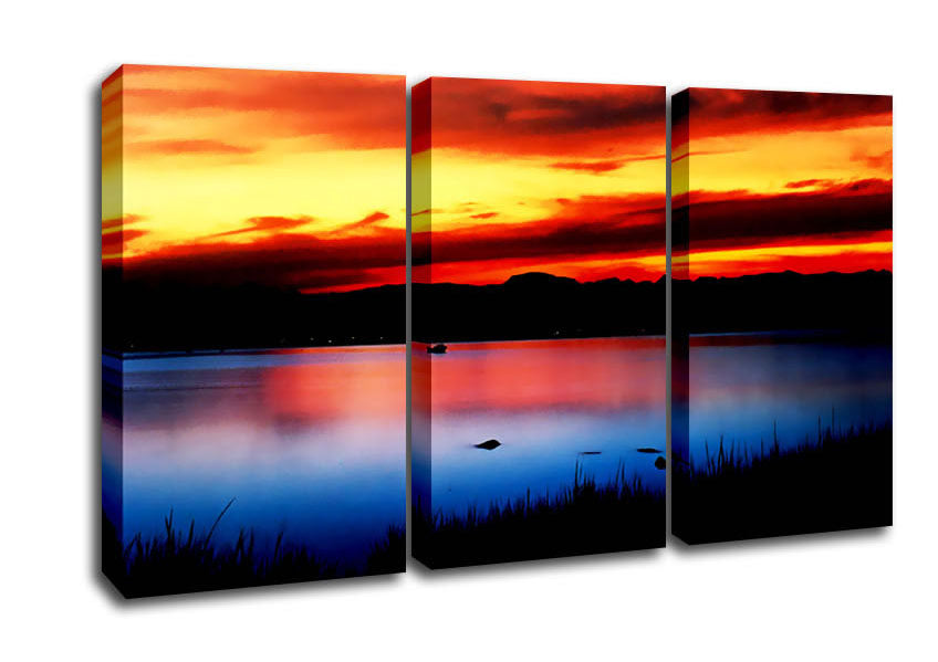 Tranquil Lake Verge 3 Panel Canvas Print handmade in the UK. Stretched over a 2 inch thick wooden box frame, ready to hang on your wall.