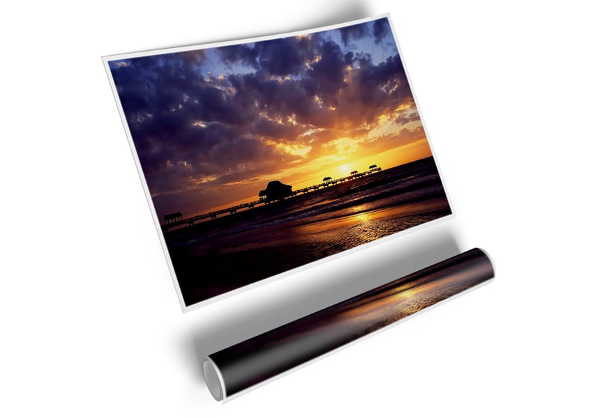 Pier Sunset Horizon Poster printed on high quality canvas paper, ready to display.
