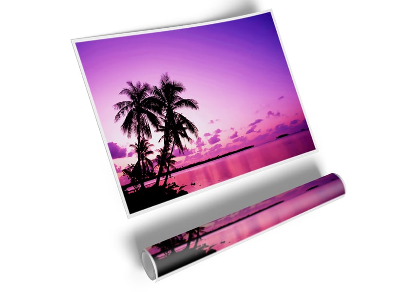 Pink Palm Tree Ocean Poster printed on high quality canvas paper, ready to display.