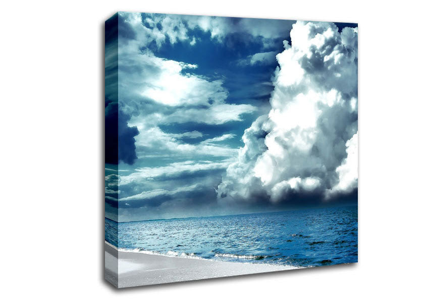 Cloudy Sky Seaside Square Canvas Print handmade in the UK. Stretched over a 2 inch thick wooden box frame, ready to hang on your wall.