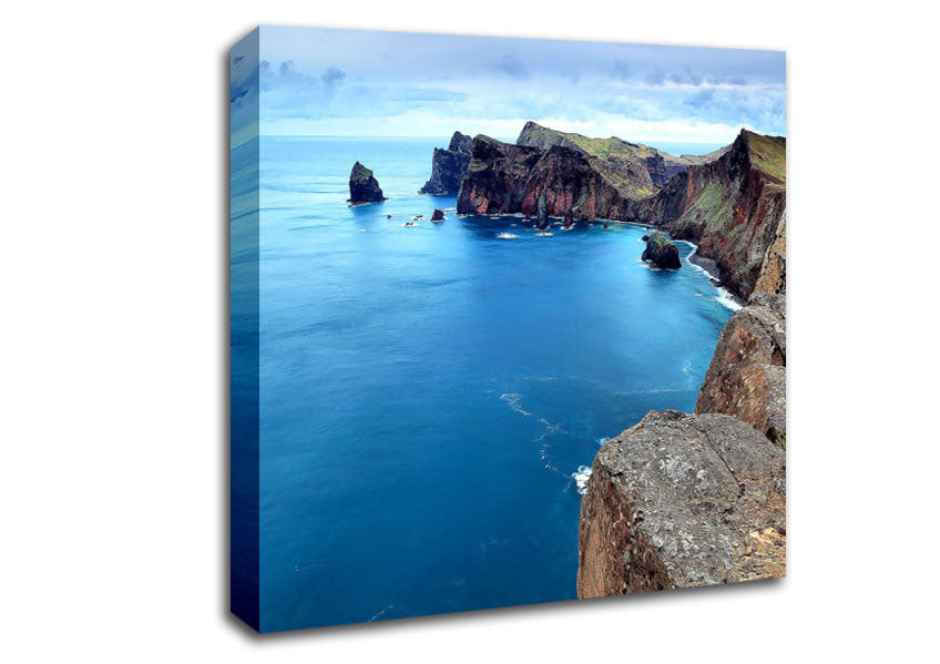 Coast Panoramic View Square Canvas Print handmade in the UK. Stretched over a 2 inch thick wooden box frame, ready to hang on your wall.