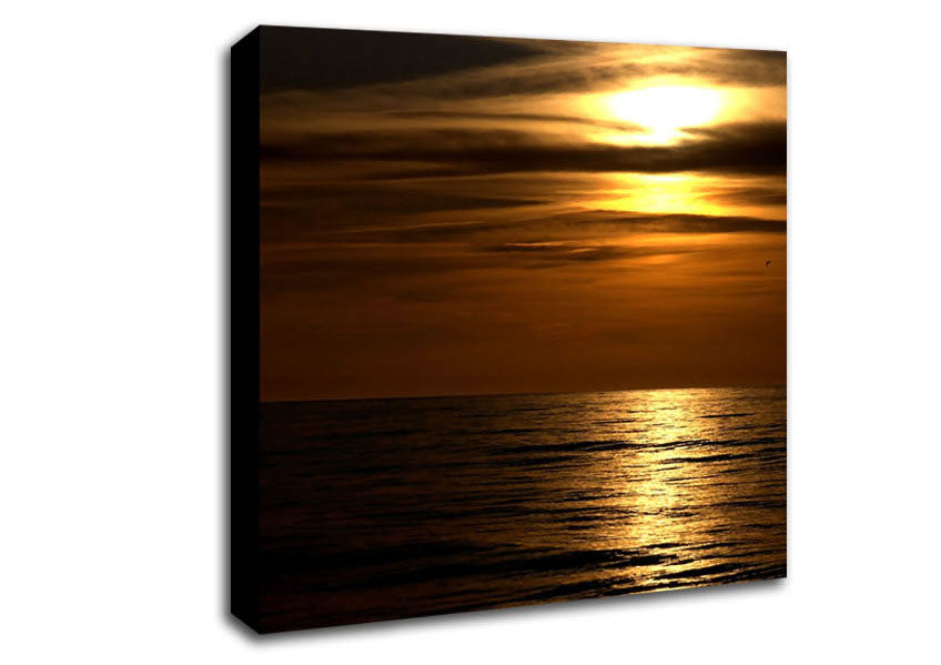 Dark Sunset Beach Square Canvas Print handmade in the UK. Stretched over a 2 inch thick wooden box frame, ready to hang on your wall.
