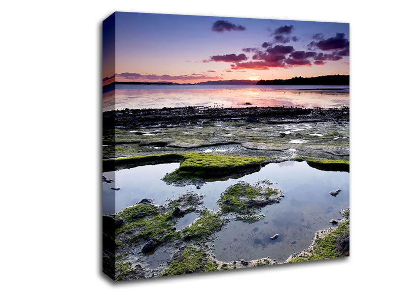 Distant Ocean Sunrise Square Canvas Print handmade in the UK. Stretched over a 2 inch thick wooden box frame, ready to hang on your wall.