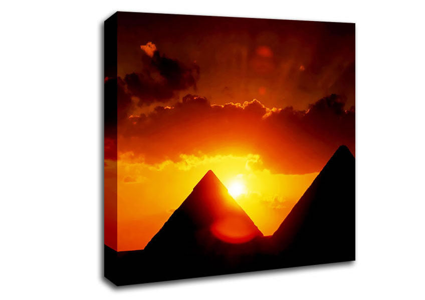 Egyptian Pyramid Sunset Square Canvas Print handmade in the UK. Stretched over a 2 inch thick wooden box frame, ready to hang on your wall.
