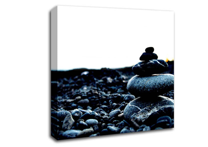 Pebbled Shoreline Square Canvas Print handmade in the UK. Stretched over a 2 inch thick wooden box frame, ready to hang on your wall.