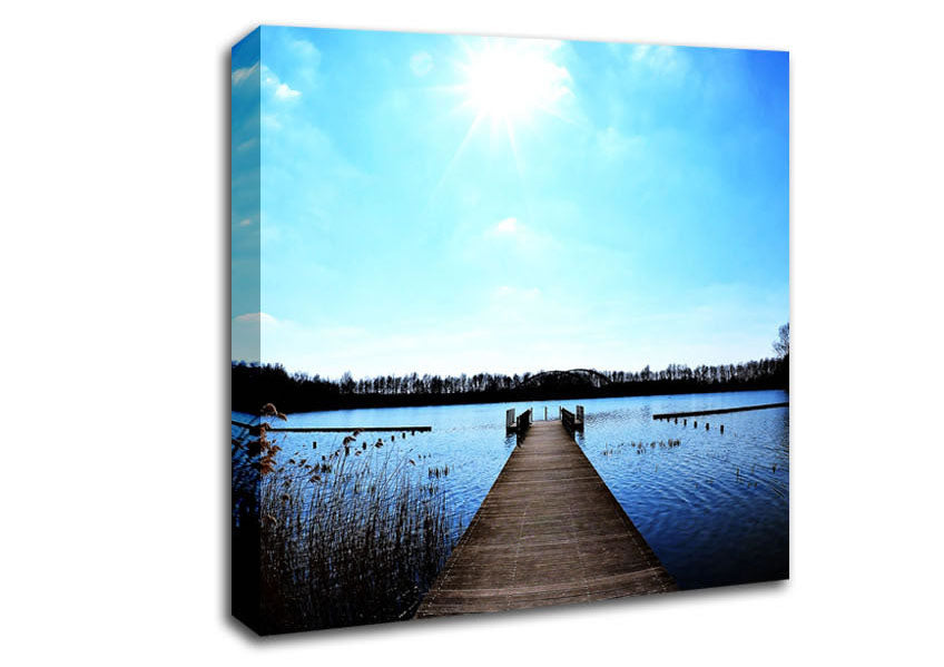 Pier Sparkle Sun Blue Square Canvas Print handmade in the UK. Stretched over a 2 inch thick wooden box frame, ready to hang on your wall.