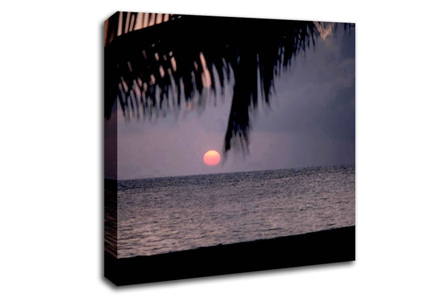 Pink Sun Sunset Square Canvas Print handmade in the UK. Stretched over a 2 inch thick wooden box frame, ready to hang on your wall.