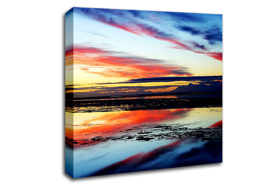 Rainbow Ocean Skies Blue Square Canvas Print handmade in the UK. Stretched over a 2 inch thick wooden box frame, ready to hang on your wall.
