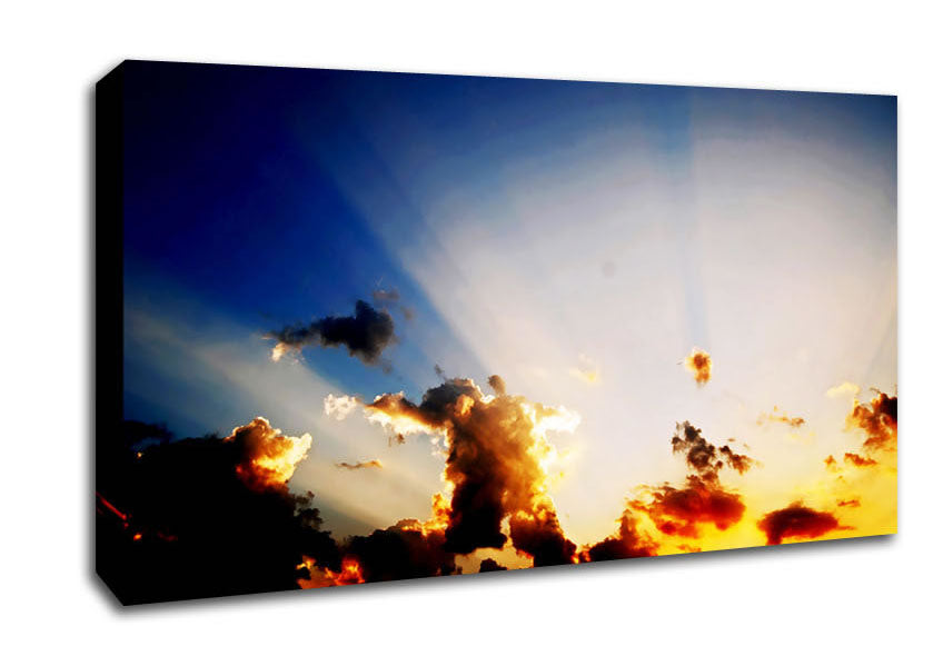 Sunrays Of The Golden Cloud Wide Canvas Print handmade in the UK. Stretched over a 2 inch thick wooden box frame, ready to hang on your wall.
