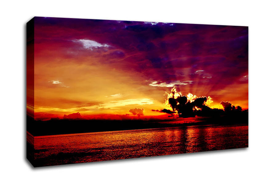 Sunrays Through The Rainbow Sky Wide Canvas Print handmade in the UK. Stretched over a 2 inch thick wooden box frame, ready to hang on your wall.