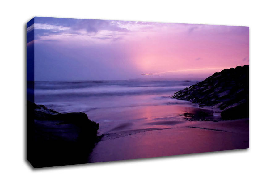 Sunset At Aberavon Beach Wide Canvas Print handmade in the UK. Stretched over a 2 inch thick wooden box frame, ready to hang on your wall.
