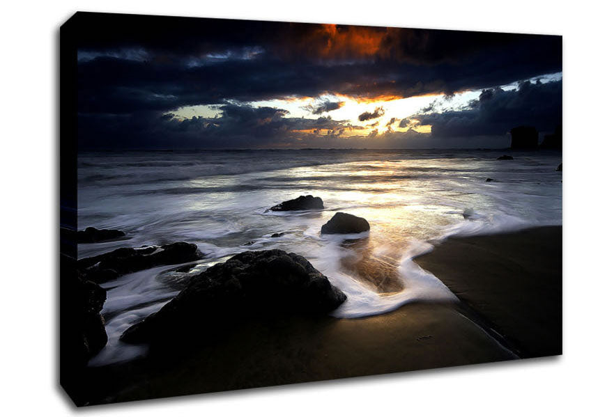 Beautiful Beach Ocean As Dawn Breaks Canvas Print handmade in the UK. Stretched over a 2 inch thick wooden box frame, ready to hang on your wall.