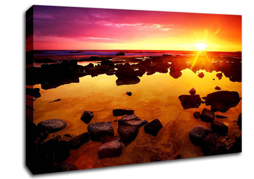 Beautiful Orange Rocky Skies Canvas Print handmade in the UK. Stretched over a 2 inch thick wooden box frame, ready to hang on your wall.