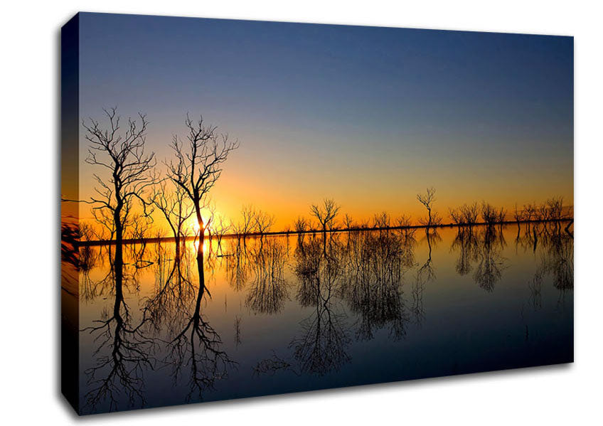 Beautiful Reflections Of The Winter Trees Canvas Print handmade in the UK. Stretched over a 2 inch thick wooden box frame, ready to hang on your wall.