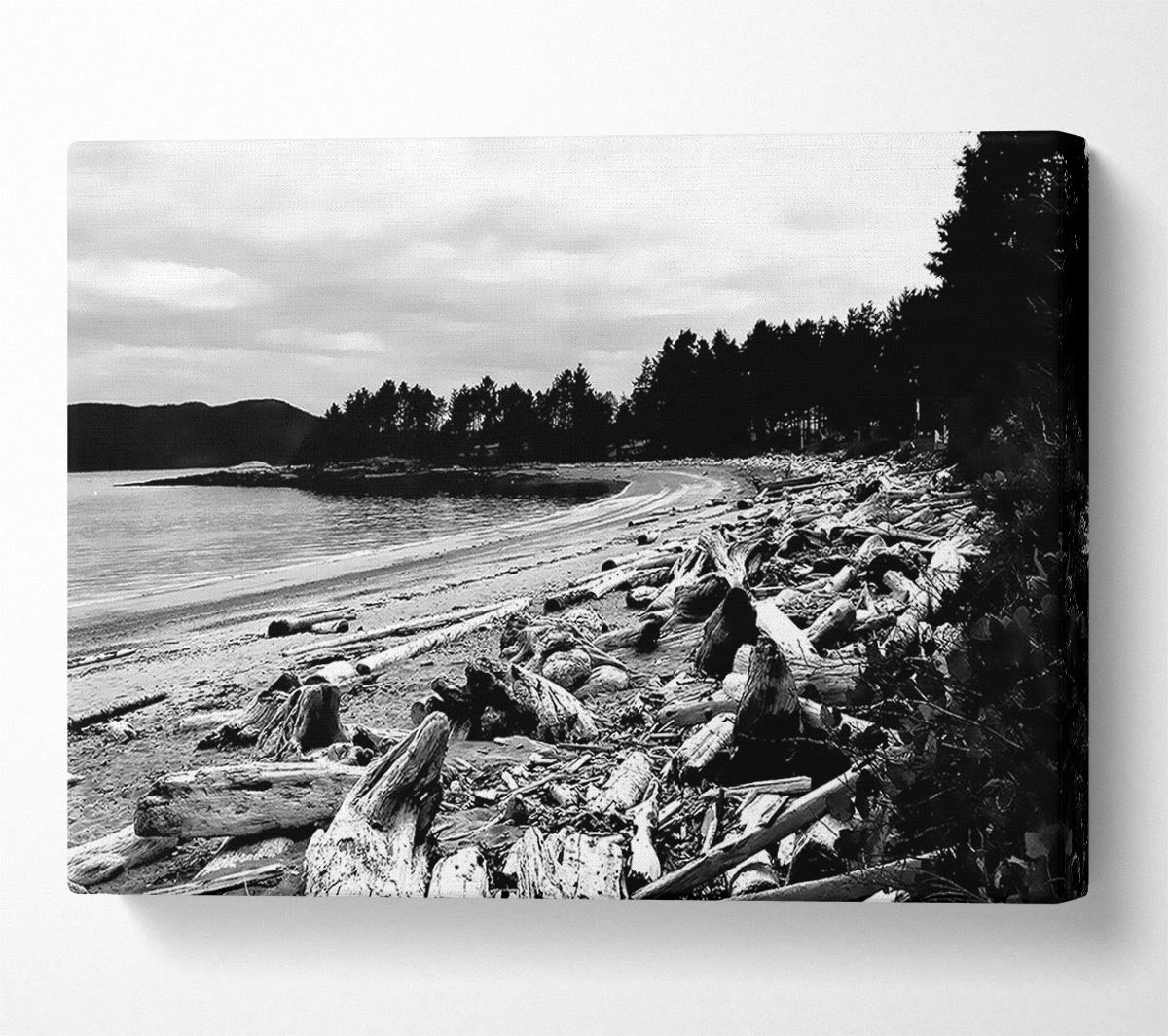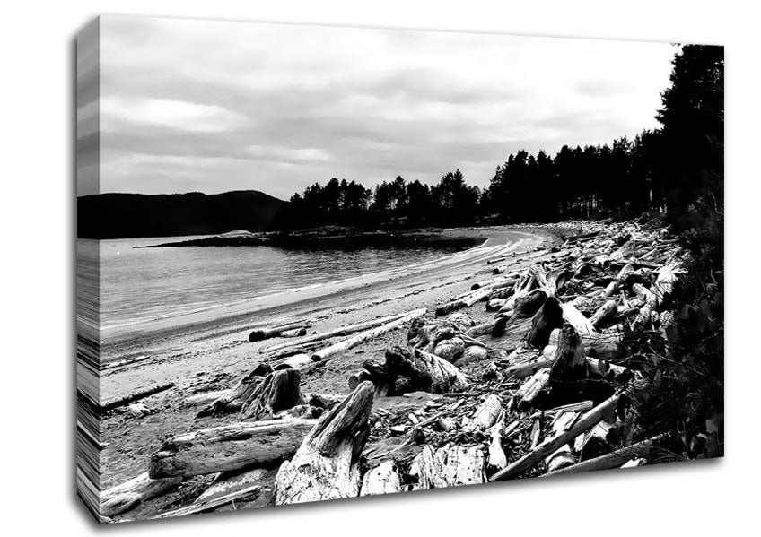 Black And White Driftwood Ocean Canvas Print handmade in the UK. Stretched over a 2 inch thick wooden box frame, ready to hang on your wall.